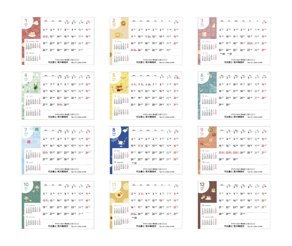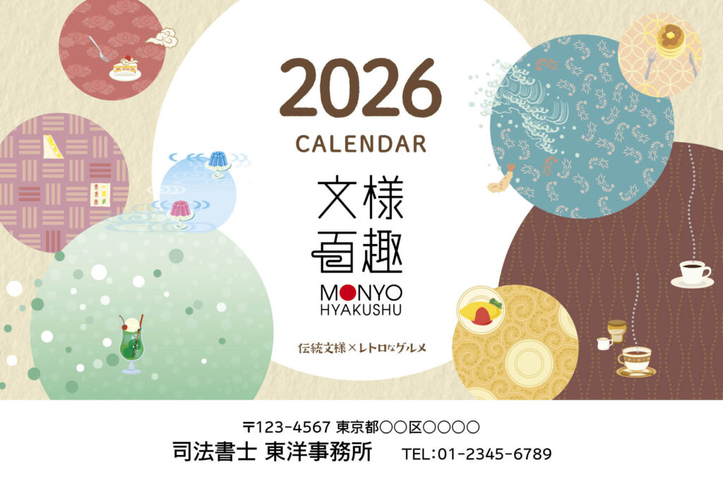 様々な想いがこめられた12種類の伝統文様と、レトロなグルメが月替わりで登場する卓上カレンダーです。